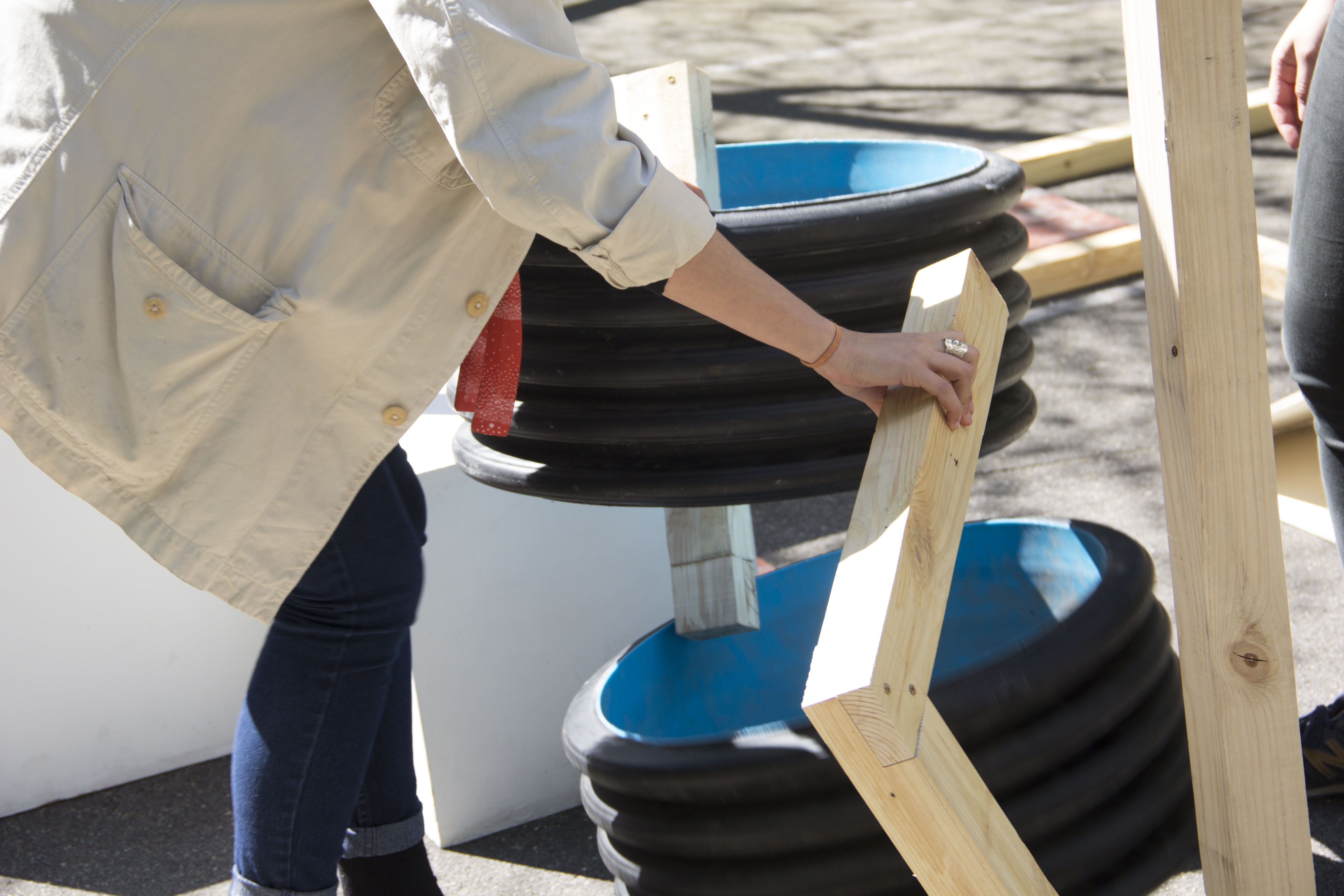«Do it yourself». It’s about moving and arranging the different pieces to build a space. We take one, we place it and replace it. An architecture is emerging.